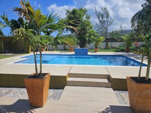 • Saltwater pool + expansive outdoor deck